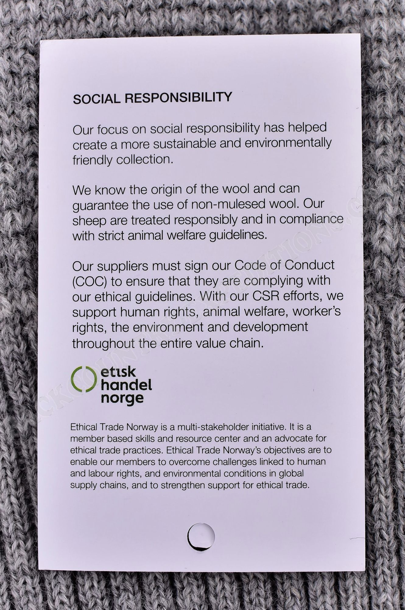 Ulvang, laut eigenen Worten, empfliehlt aus ihrer „Verantwortung“ heraus einerseits Woll-Pflege-Produkte der Unternehmens-eigenen Marke Toko, lässt den Pullover aber andererseits in China fertigen, und zwar ohne genaue Nennung der Produktionsstätte, oder gar einen Herkunftsnachweis der Wolle selbst; was ich mindestens fragwürdig finde.