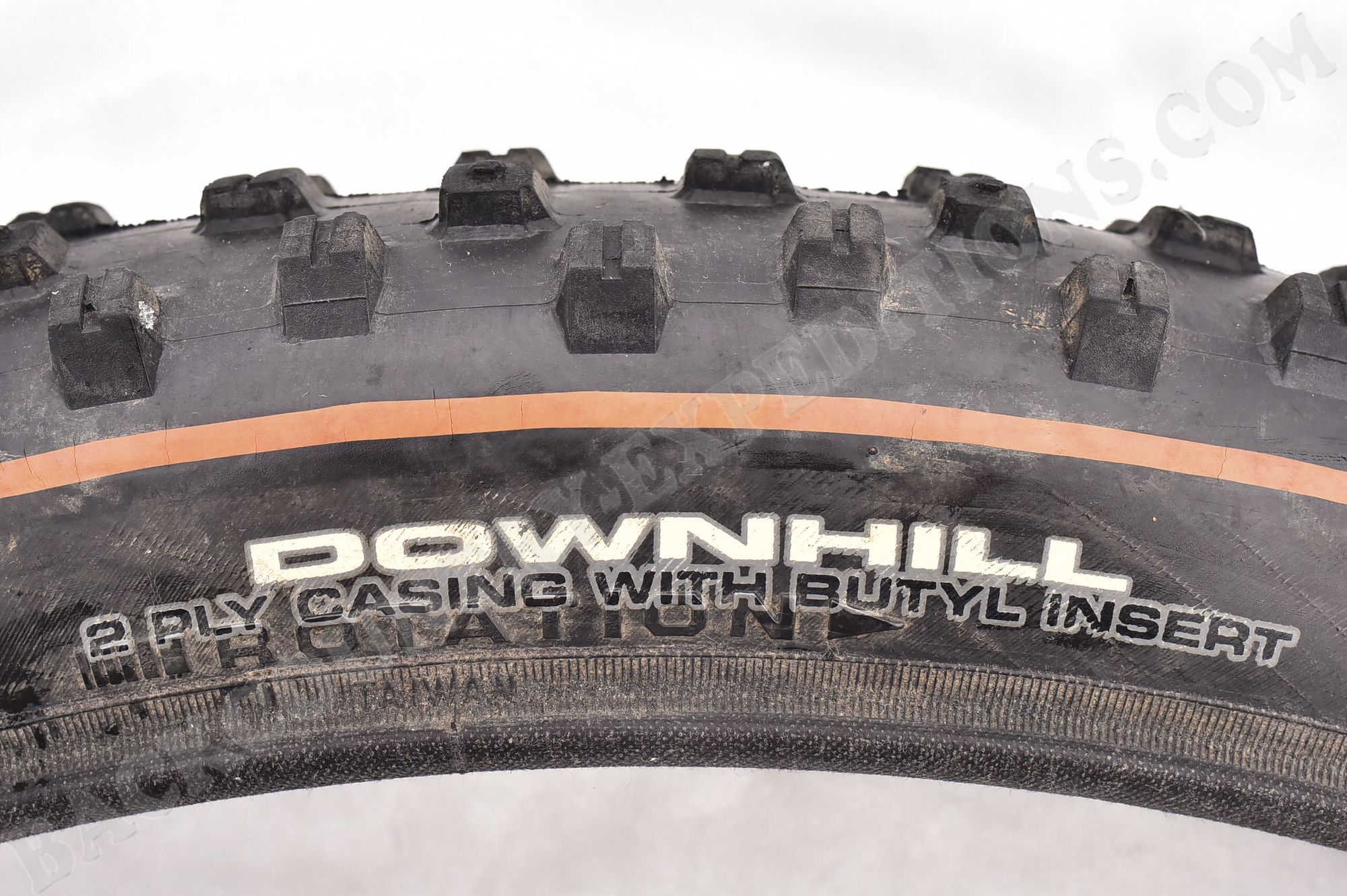 Die Maxxis-Reifen der Downhill-Serie bestehen aus zwei Lagen 60-TPI-Karkassenmaterial (60 Fäden pro 2,54cm) und einem großflächigen Butylkautschuk-Einsatz, welcher ab dem Wulstkern die Seitenwand nach oben stabilisiert, und so vor Durchschlägen schützt.