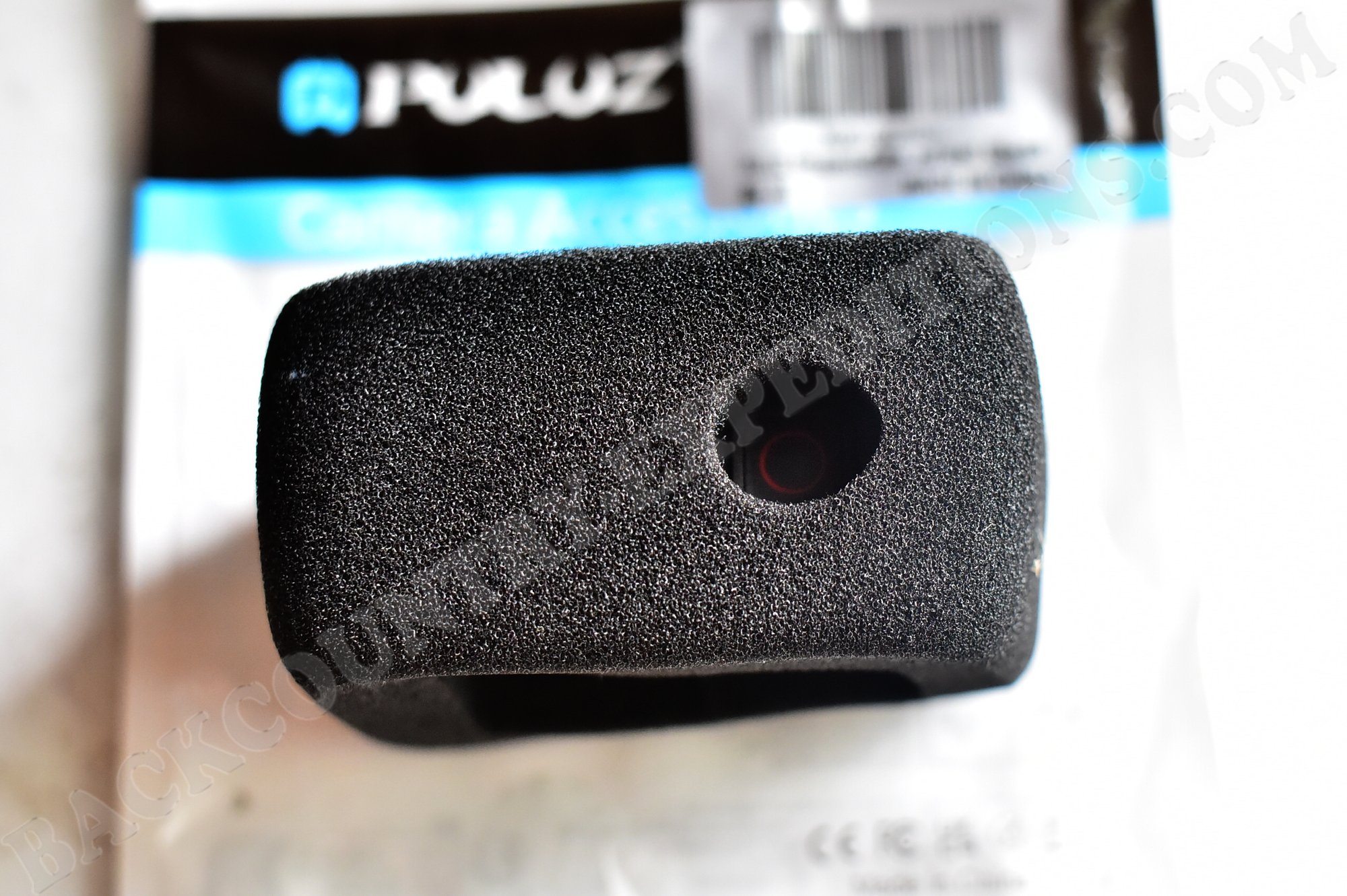 Und das ist auch der Grund, warum ich mir solch einen Windschutz nicht eher zugelegt hatte, weil ich diese Aufnahme mit meinen Selfie-Stick fest verbunden hatte. Dennoch aber konnte man den Schaumstoff drüber stülpen, nur eben nicht vollständig; an genau dieser Stelle riss der Windschutz dann nach einem Jahr Nutzung ein/durch, so dass er dann oft abfiel, auch vom Wind selbst. Aber immerhin, ein Jahr Haltbarkeit, das hätte man durchaus schon vorher machen können.