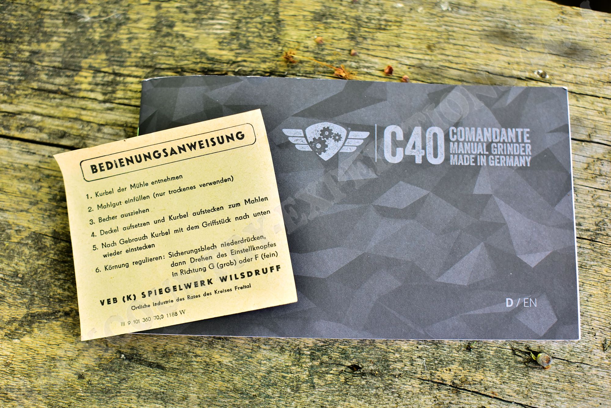 Über 60 Jahre trennen diese beiden Handmühlen: luxuriöser Kapitalismus vs. pragmagtischer Sozialismus. In allen Punkten trägt der Kapitalist deutlich dicker auf: Verpackung, Anleitung, Vermarktung, und natürlich auch die Mühle selbst. 300g DDR-Bakelit vs. fast 600g BRD-Edelstahl.