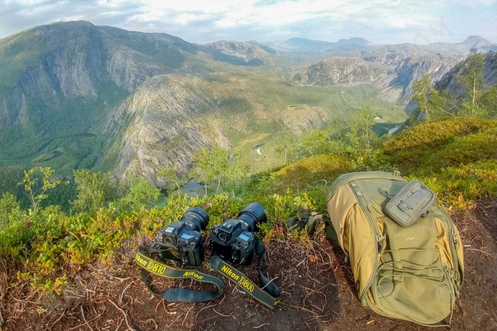 Digitale Vollformat-Spiegelreflexkameras Nikon D800 & Nikon D810 mit Nikon-Objektiven AF-S Nikkor 14-24mm 1:2.8 G ED, AF-S Nikkor 24-70mm 1:2.8 G ED, AF-S Nikkor Objektiv 50 mm 1:1.8, AF-S VR Micro-Nikkor 105mm 1:2.8 G IF-ED, AF-D Nikkor 80-200mm 1:2.8 ED, AF-S Nikkor VR 300mm 1:2.8 und diversem Zubehör: Speicherkarten Panasonic RP-SDU RP64 GAK & SanDisk 64GB Extreme CF-Card, Kabelfernauslöser, Blitzgerät Nikon SB-910 Speedlight, Mikrofon Sennheiser MK400 + Windschutz MZW400, Hoya Protector-, UV-, Grau- und Polarisationsfilter, Stativ Manfrotto 055X PRO B + Kugelkopf Sirui K30X, Stativ Rollei Compact Traveler No.1, Stativtasche Manfrotto, Fotokoffer Pelican 1550, Fototasche Ortlieb DigiShot M.